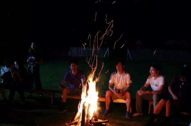 回到青旅已经是晚上八点。旅舍后院的草坪上,同学们自己点上了篝火,以星空和昏暗看不明晰的大山为背景,喊出那些来自遥远和悠长的歌声。