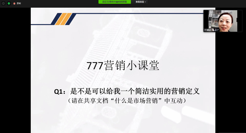7月1日上午,来自上海财经大学商学院的女神老师——叶巍岭老师为匡时班学员们带来了独特的“777营销小课堂”。