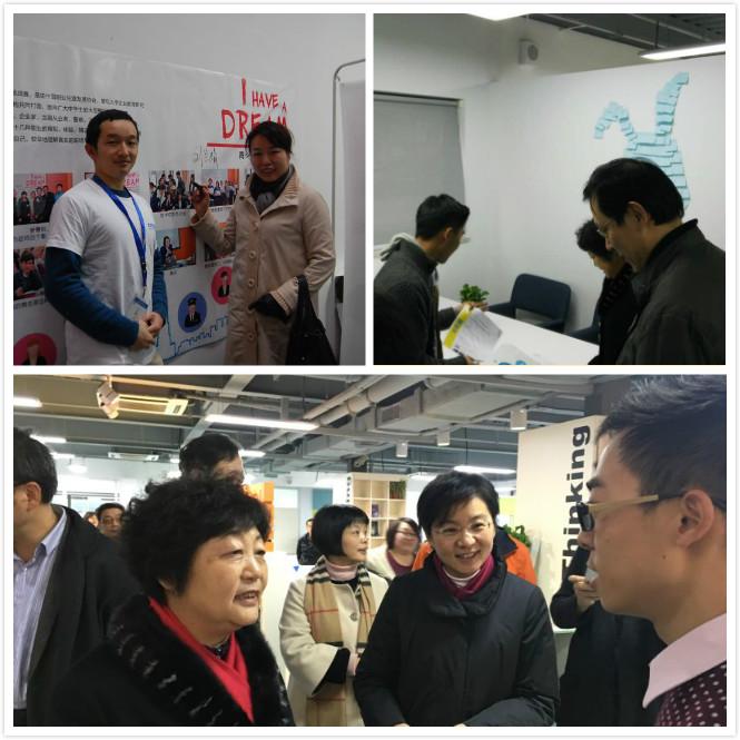 2015年12月27日下午,上海财经大学创客空间热闹非凡,人声鼎沸。空间正式迎来了我校第一批35支入驻创业团队,同时也迎来了参加“五角场”创业新苗新锐评选大赛的一批珍贵的客人。杨浦区副区长李雅平、上海市就业促进中心主任张得志等领导,在樊丽明校长、刘丽娟副校长、姚玲珍副校长的陪同下参观了我校众创空间,与我校创客学子进行了亲切交谈。陪同考察的市领导、杨浦区领导有上海市就促中心杨永华副主任,杨浦区金融服务办公室宋南晖主任、杨浦区投资促进服务中心李阿铭主任、五角场街道余翔书记、五角场街道李正明主任、杨浦区科委马庆副主任、杨浦区人社局杨春雷副书记等嘉宾,我校国际工商管理学院鞠建东院长、创业学院刘志阳执行副院长等参加了会见。