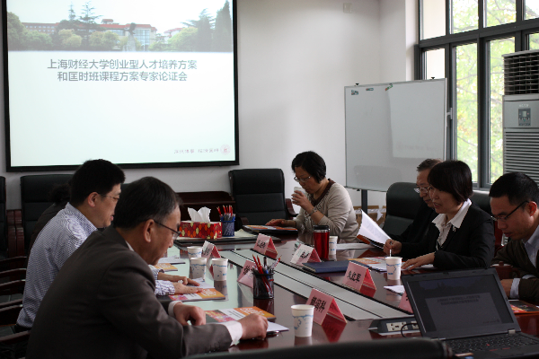2016年4月25日下午,上海财经大学创业型人才培养方案专家论证会在教务处二楼会议室召开。论证会邀请了复旦大学教务处处长徐雷、上海外国语大学教务处处长姜智彬、上海理工大学教务处副处长郝润科等校外专家,我校副校长兼创业学院院长刘兰娟、国际工商管理学院教授陈启杰、教务处处长朱红军、研究生院副院长李劲松等校内专家出席论证会。