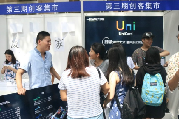 创客集市由创业学院、团委主办,旨在为青年创客们提供项目成果展示和交流的平台。午间,第三期创客集市在绿叶步行街火热展开,来自匡时班的挂科险、一口轻食、1917、故事家、unicard等14个创业团队各出高招,以试用、抽奖、玩偶人等活动方式吸引过往同学。上财创客们热情地介绍自己的项目与产品,招募志同道合的新生伙伴,引来了众多同学们的积极响应,场面一度火爆至极。