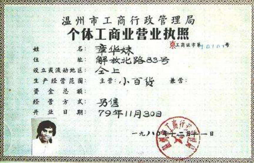 改革开放后的第一张营业执照