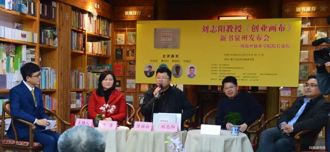 在刘志阳教授新书分享后,迎来了华侨大学创新创业学院院长陈国柱、福州大学创新研究院、学生处副处长叶青以及泉州师范学院陈守仁工商信息学院副院长许旭红与刘志阳教授共同为大家开启海丝创业学院院长论坛。