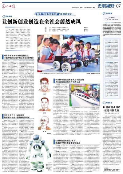 创新创业创造越来越成为全社会的共同价值追求和共有生活方式