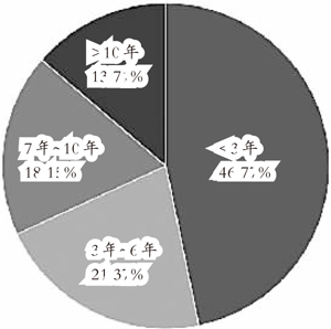 中国大部分社会企业都是2000年以后成立的,总体处于初创和成长阶段,发展历史短暂。调研显示,社会企业成立年限为3年以下的比例高达46.77%,21.37%的社会企业成立年限为3~6(含)年,18.15%的社会企业成立年限为7~10(含)年,13.71%的社会企业成立年限为10年以上(如图一)。