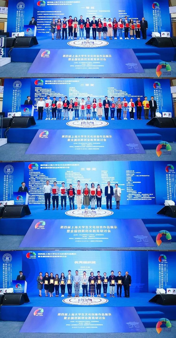 活动最后,进行了上海市互联网+大学生文化创意作品颁奖仪式。我校SENSELF原创独立设计等27个项目获得一等奖,E品黑尊等51个项目获得二等奖,会跳舞的房子等72个项目获得三等奖,同济大学等10个高校获得优秀组织奖。刘兰娟副校长和朱鸣雄副书记等为获奖者代表颁奖。