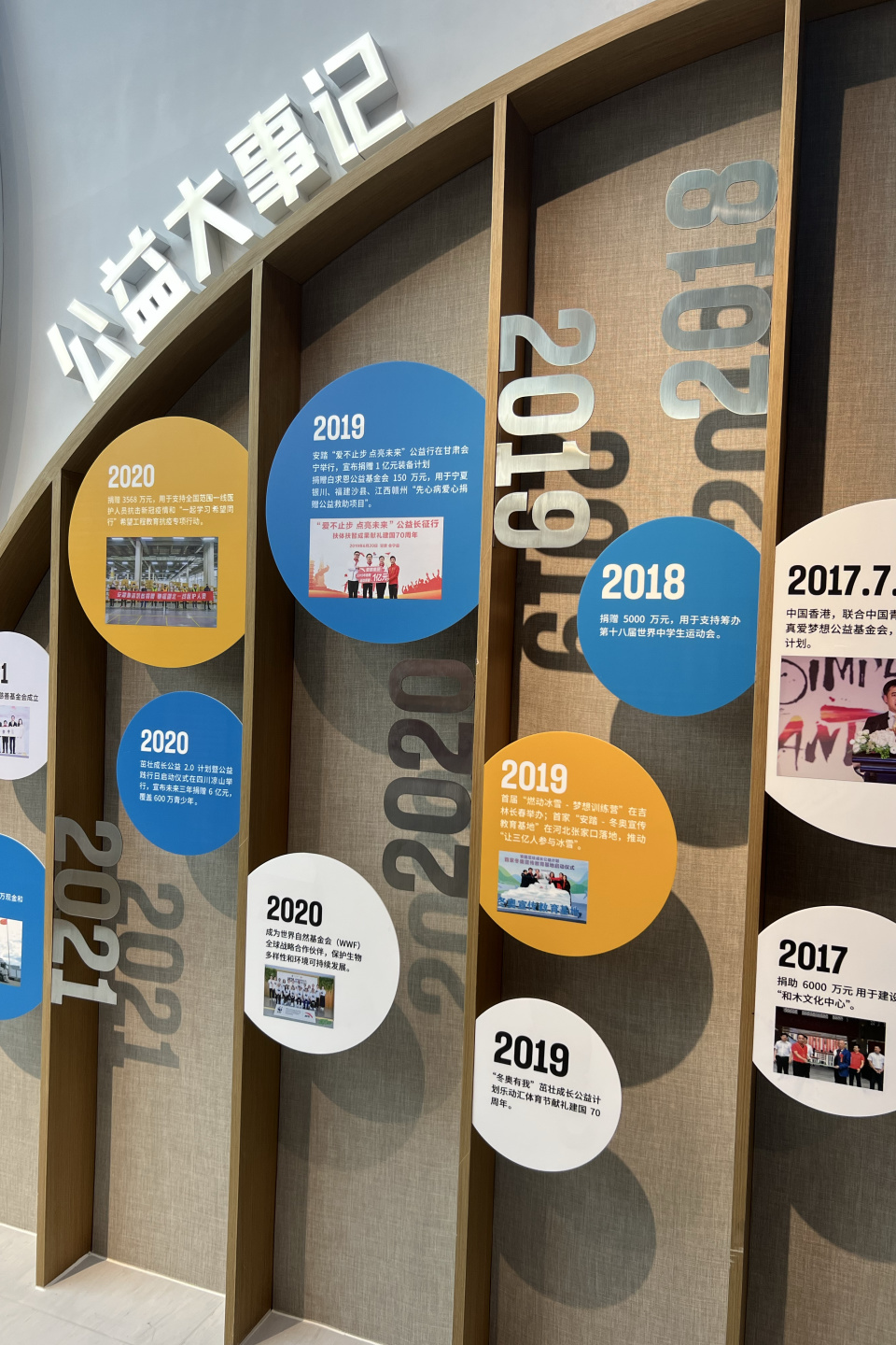 通过一张张生动的照片,同学们了解到了安踏集团40多年的发展历程;从举重、篮球到跑步的丰富产品矩阵中,认识到了安踏强大的产品实力;看到了安踏正在实施的茁壮成长公益计划,以及对乡村振兴的助力。