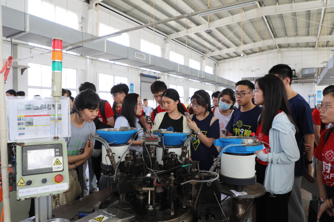 第二站,同学们来到了福建浔兴拉链科技股份有限公司进行参访。浔兴拉链以其强大的生产能力和全国居首的产销量而闻名。同学们主要参观了浔兴公司的拉链合链车间、尼龙车间、检查包装车间,了解了浔兴拉链生产的一系列流程以及公司生产线的全自动化能力。