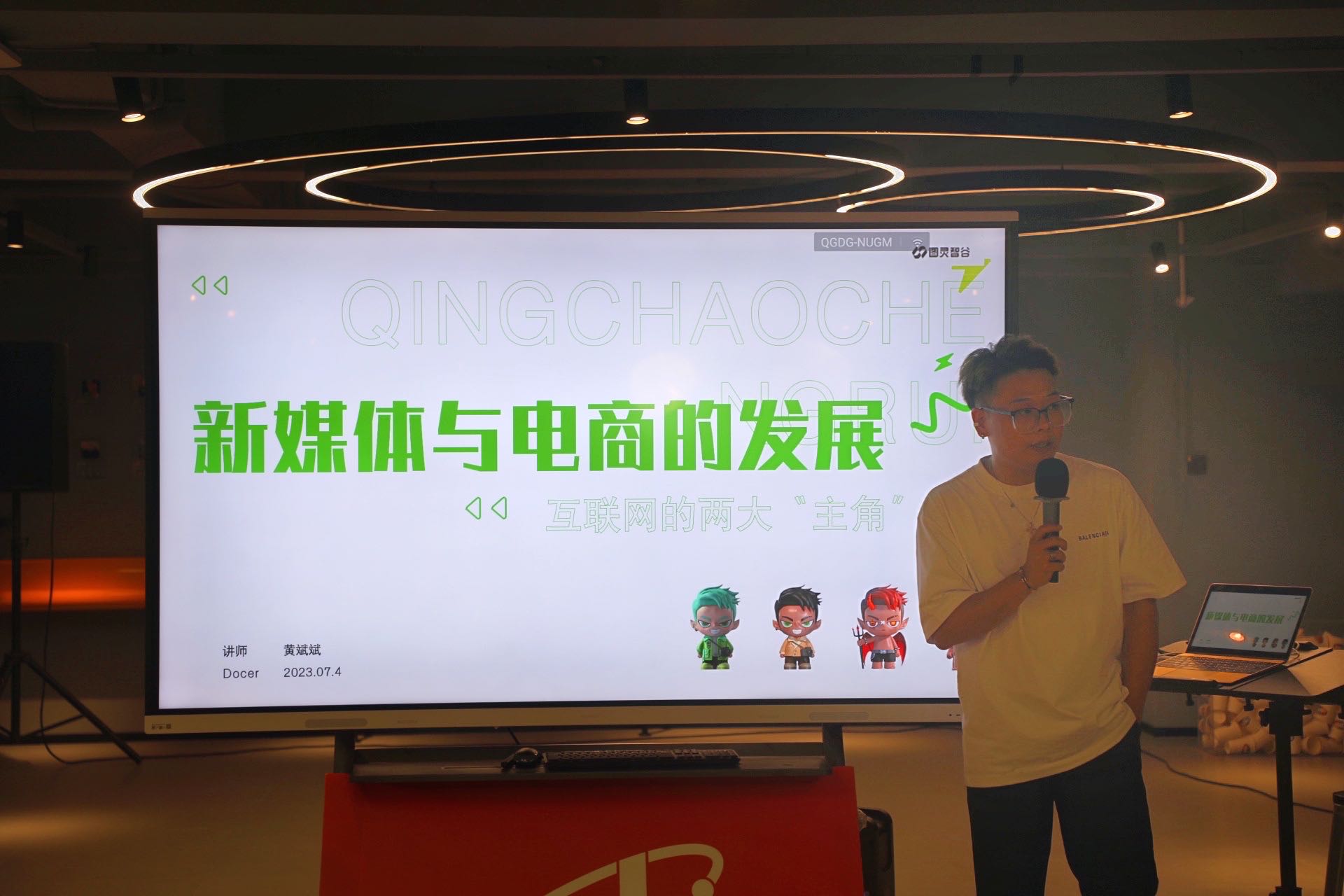 晚上,黄斌斌老师以新媒体与电商发展为主题进行分享,黄老师用风趣幽默的语言和生动具体的实例向同学们讲解了新媒体的概念、发展历程,不同类型的电商的成交逻辑、变现模式等内容,并解答了同学们的问题。