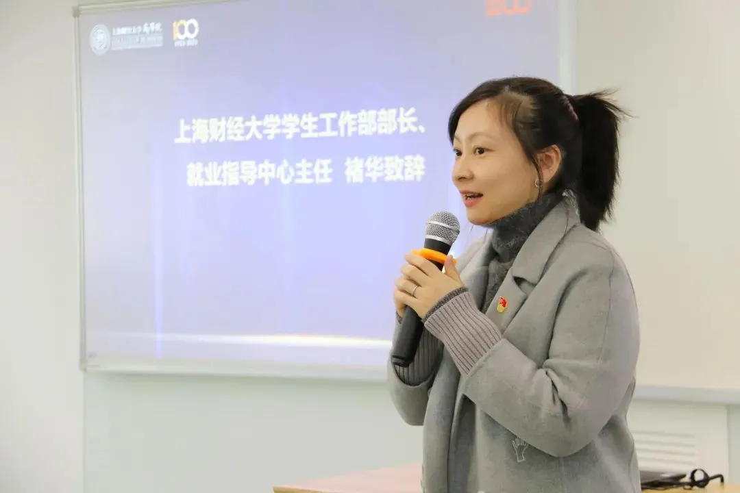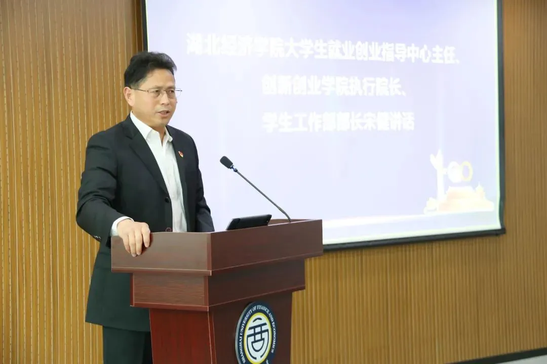 湖北经济学院大学生就业创业指导中心主任、创新创业学院执行院长、学生工作部部长宋健发表讲话。他首先对上财给予湖北经济学院的支持和帮助表示衷心感谢。他指出,自从教育部实施“一帮一”行动计划以来,湖北经济学院和上海财经大学两所院校便结下深厚友谊,双方在共享就业岗位信息、开拓就业渠道、加强就业指导、开展创业活动等方面进行了全面深入合作,希望共饮长江水的两所院校未来继续携手并进,共同促进教育的发展和提升,实现两校合作共赢。
