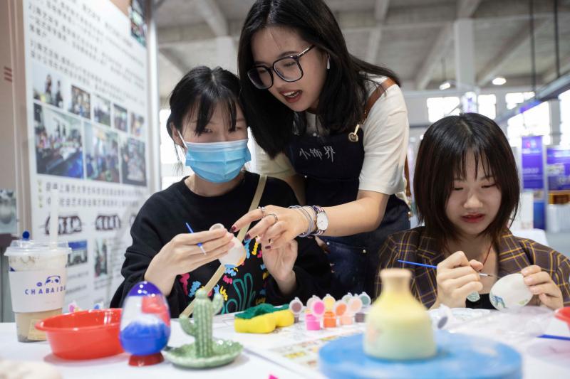 “创业是一种尝试,也是一种体验,让未来有更多的选择。”活动现场,杨韵琪正在指导一名体验者做陶艺,今年大二的她和几名志同道合的同学一起创业,从事陶