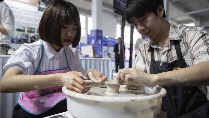 因为喜欢陶艺而创立一家陶艺培训机构,上海商学院大二学生杨韵琪将兴趣变成了自己的职业。