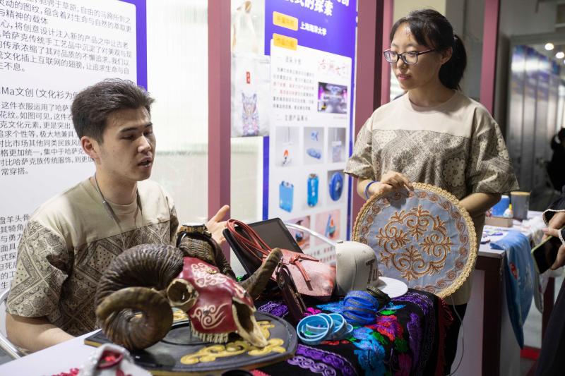 哈萨克族学生将民族工艺应用到产品设计中。