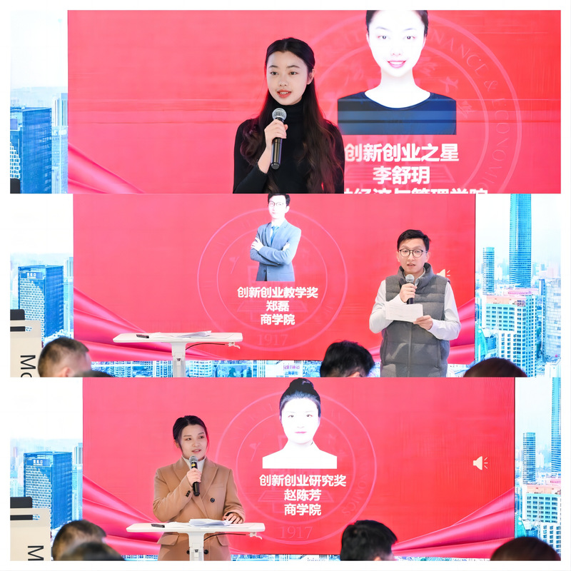 会议同步举行了上海财经大学宏铭创新创业奖教奖学金颁奖仪式,经评审委员会资格审查、答辩和公示,最终评选出本年度创新创业之星、创新创业研究奖和创新创业教学奖。常务副校长徐飞、合作发展处处长陈红梅和教务处副处长江晓东分别为他们颁奖。