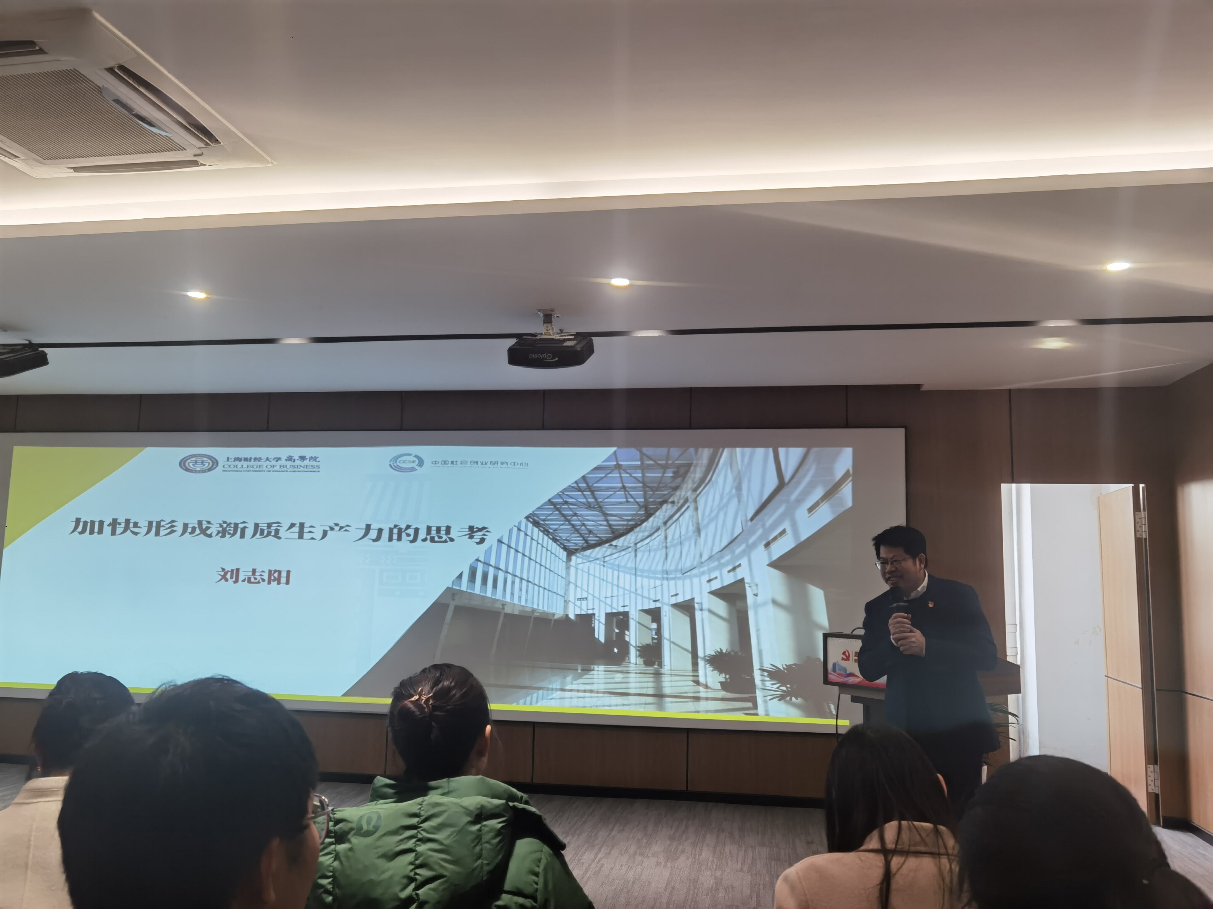 随后,师生们听取了刘志阳教授以《加快形成新质生产力的思考》为主题的报告,从“为什么要提出新质生产力出发”,循序渐进地讲解了新质生产力的核心内涵,理论体系和发展要点,结合当前人工智能的技术热点引入人工智能新质生产力。