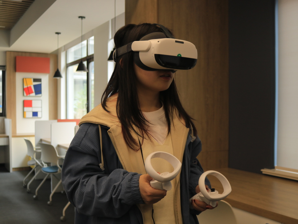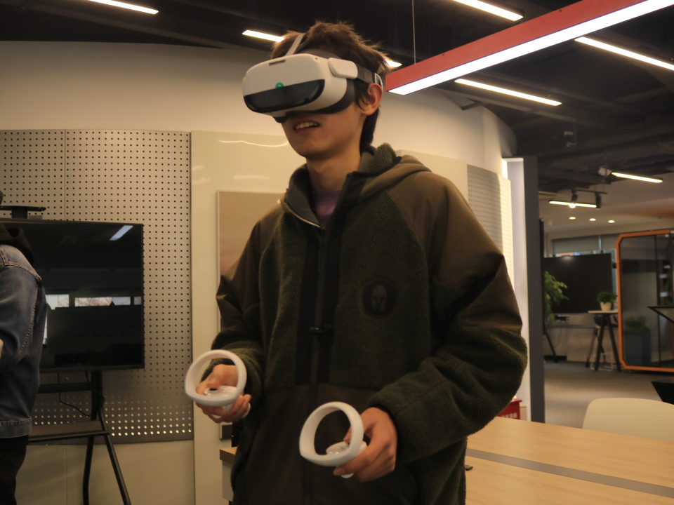 我报名参加了创新创业实验室的体验日活动,体验了创院的各种设备,在VR眼镜中观看星球视频徜徉在外太空,在剧情系统中代入人物角色,我领略到了科技的魅力,也让我更加深刻地认识到科技对社会发展的重要性。