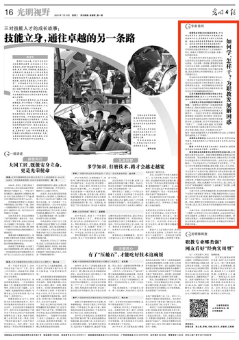 北京师范大学教育学部教授俞启定:现代科技的迅猛发展导致生产工艺快速提升,所以,技能人才需要打好文化基础、具备一定的理论造诣。