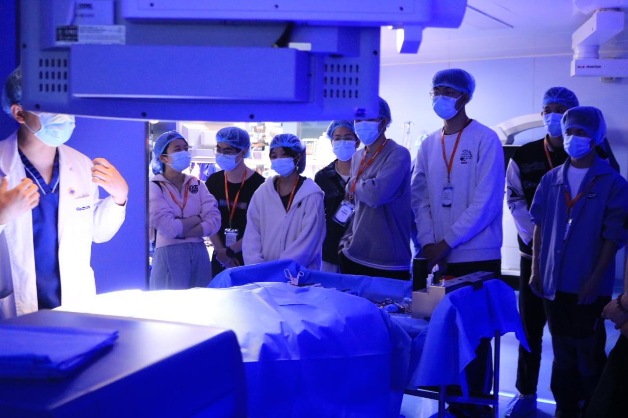 在外科模拟手术室,同学们在工作人员的带领下参观了正在进行的各类手术,了解了手术实操流程以及手术中常见的各种器具及功能。