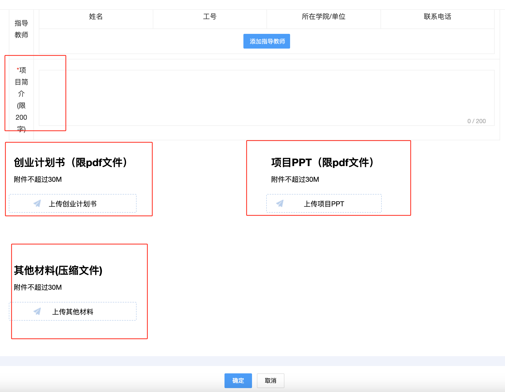 填写校内赛参赛信息申报,上传创业计划书、项目PPT等材料。
