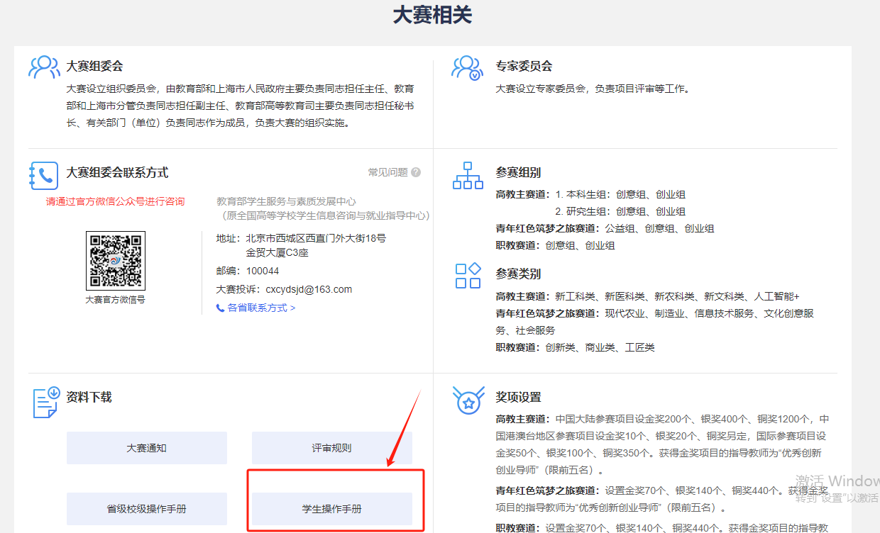 在浏览器搜索框内输入https://cy.ncss.cn/,登录“全国大学生创业服务网'下拉至第2屏“大赛相关”页面,可在“资料下载”版块下载“学生操作手册”。该手册为官网发布的操作指南.