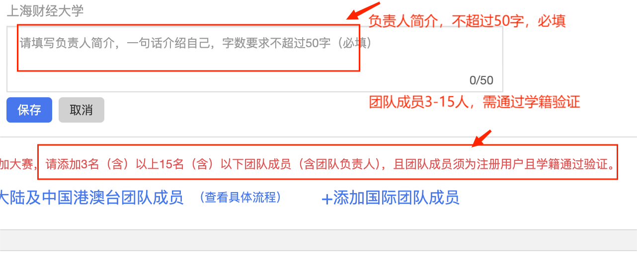 1.国际团队成员姓名使用英文填写,其余信息请均使用中文填写。