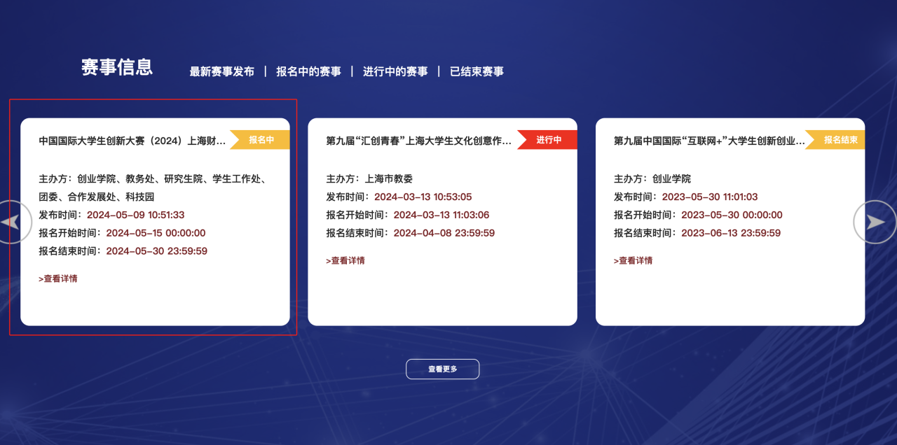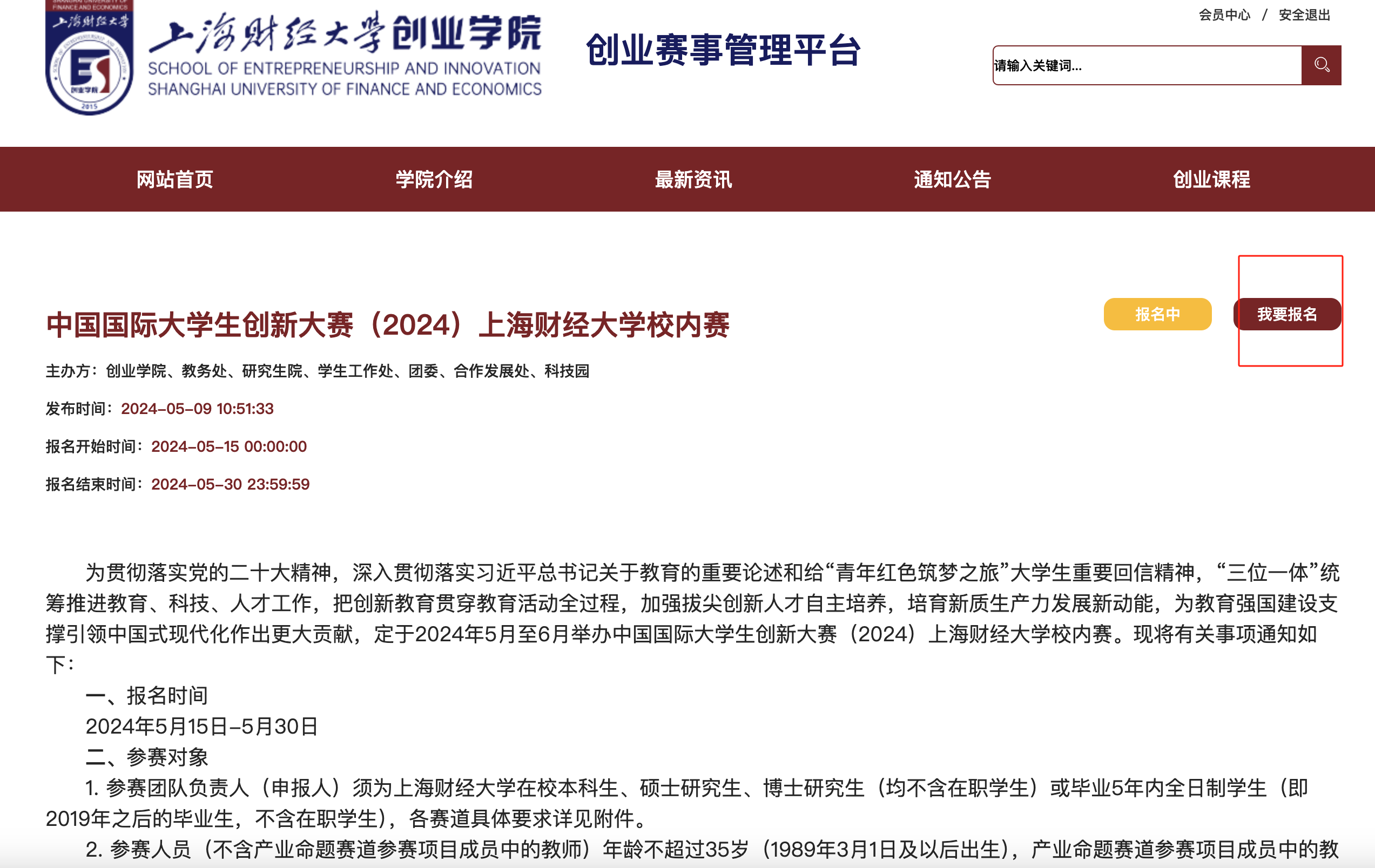 选择“中国国际大学生创新大赛(2024)上海财经大学校内赛”。