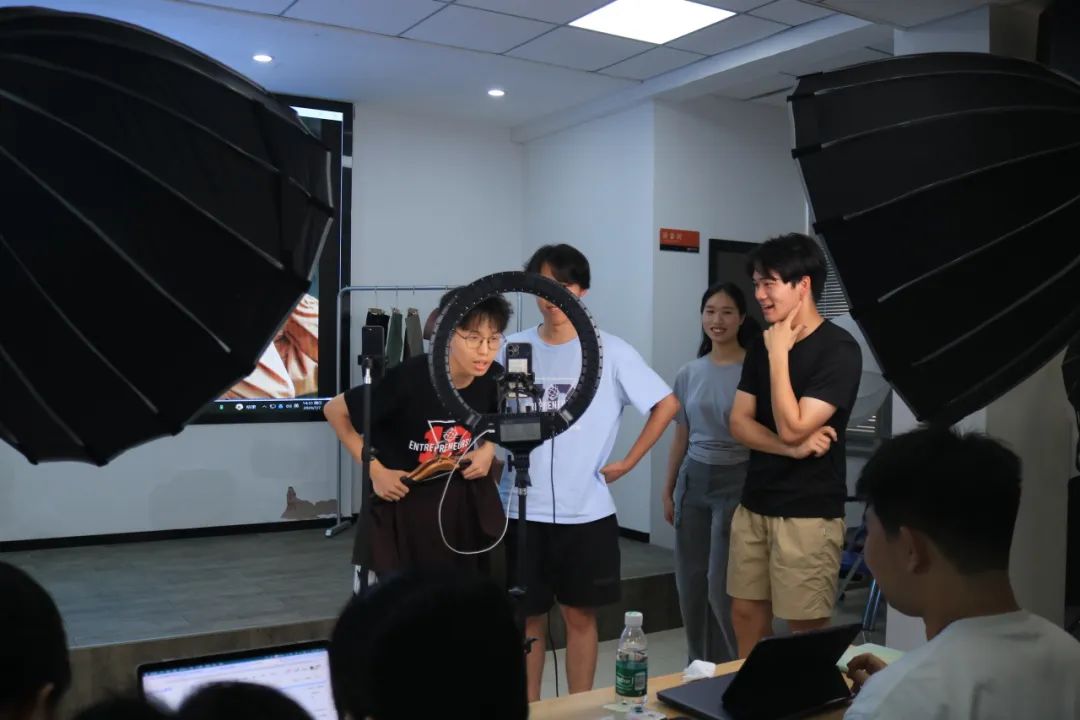 来到石狮青创城之后,负责直播运营的老师给同学们进行了直播理论知识的培训。他主要从直播前准备、人员岗位安排、直播销售技巧和直播间规范等四个方面为同学们进行了相关注意事项的介绍。同学们都在认真聆听老师的叮嘱,为下午的实践做足了准备。课程结束后,各小组纷纷发挥才智、各显神通,拍摄了创意十足的直播预告视频,大家对直播实践摩拳擦掌,充满期待。
