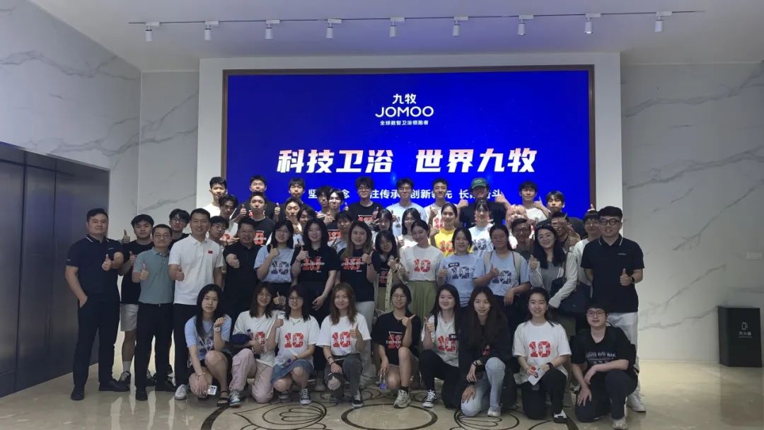 同学们了解到九牧企业自1990年创业以来,不断发展壮大,远销120个国家和地区。在设计方面,连续两年获得红点至尊奖,实现行业零突破;在技术方面,荣获专利2万多项,平均每天有五项专利;在质量方面,主导制定了国际标准20多项,国家标准200多项。九牧的发展历程包括研发矿用喷淋式健康除尘系统、淋浴花洒、陶瓷新水龙头、智能马桶等产品;2018年实施乡村振兴干净中国的战略,改建乡村厕所约100万座;2020年进驻故宫、长城、布达拉宫等世界地标;2021年荣获中国第一世界前三的荣誉,与华为达成战略合作。董事长林孝发先生当选14届全国政协委员,九牧计划在2030年实现全球象征第一名,成为全球数智卫浴的第一品牌。