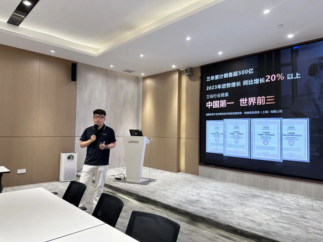 在参观之后,同学们还有幸聆听了讲解老师对九牧集团的发展情况与战略规划的介绍,详细讲解了九牧集团在故宫、北京大兴机场、武神山医院等建筑上的应用,以及与保时捷、华为等诸多知名品牌的合作,这让同学们深刻感受到了“以用户为中心,以贡献者为荣”的品牌精神。