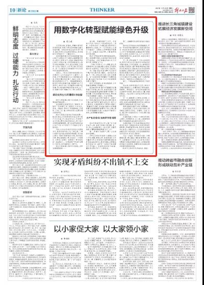 实现碳达峰、碳中和,是事关中华民族永续发展、构建人类命运共同体的重大战略决策。在数字化转型全面推进的当下,推动经济社会发展绿色转型,理应将数字化转型作为一个重要抓手。