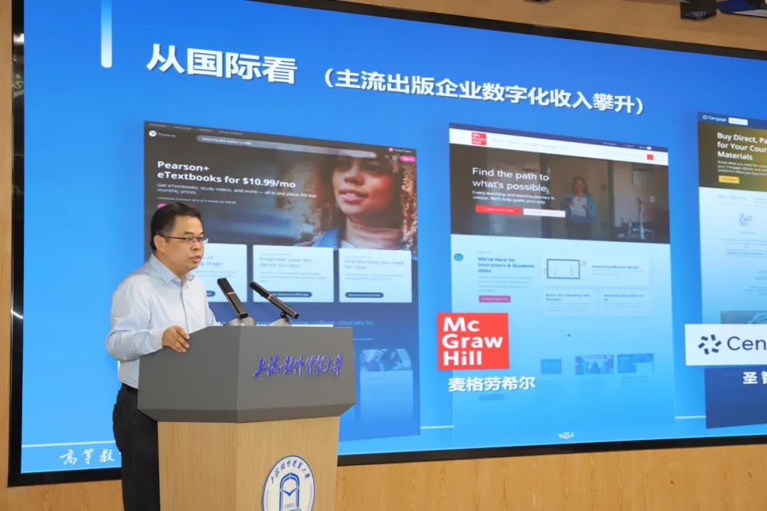 在“开辟教材建设新领域,塑造教育发展新动能基于高教社的数字教材建设实践与思考”议题中,郭金录带来了关于 “开辟教材建设新领域,塑造教育发展新动能”的分享。他以高教社数字教材建设为例,介绍了如何通过数字化教材促进教育质量的提升,助力高校教学现代化改革。