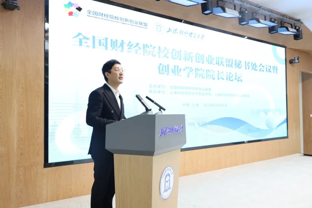 我校科研处处长、创业学院执行副院长刘志阳代表联盟做主题分享。他阐述了联盟在推动财经类高校创新创业教育合作方面的成就和未来愿景,强调了学校在培养具有企业家和科学家精神的实战人才的重要性,肯定了上海对外经贸大学在外贸领域的教育实践特色,提倡根据地区和院校特色特定领域建立话语体系和阵地,助推“数字+新财经”成长。他就联盟推动课程评价改革、促进院校间合作等工作进行了阐述,感谢多方院校、企业和专家的支持。