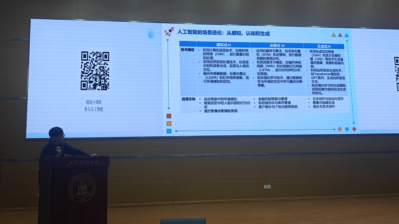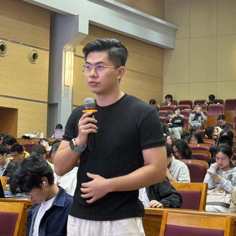 讲座过程中,现场气氛活跃,同学们积极参与互动。在问答环节,同学们纷纷提出自己对于人工智能领域的疑问和见解。有同学询问关于生成式 AI 伦理问题的应对措施,张子彧从技术和社会两个层面进行了详细的解答。他提到在技术上可以通过设计算法来避免生成虚假或有害信息,在社会层面则需要建立完善的法律法规和伦理准则来规范其发展。还有同学对如何将人工智能技术应用于学术研究感兴趣,张子彧结合不同学科的特点给出了针对性的建议,现场互动交流让同学们对讲座内容有了更深入的理解。