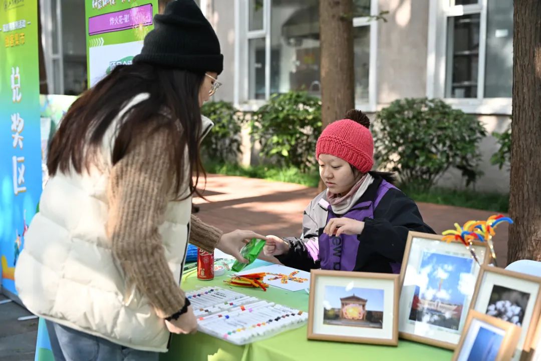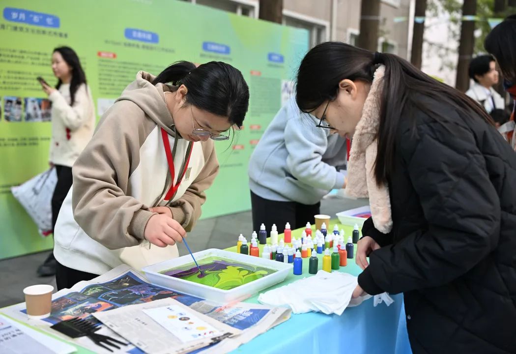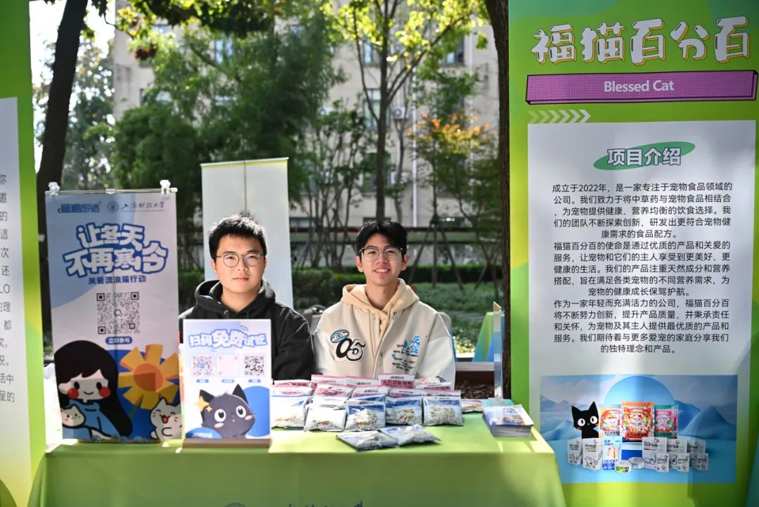 “被窝帮帮”“一来三喜—新中式生活方式展”“岁月‘石’忆——蓝豆豆记忆坊”……一系列创业展位精彩亮相,涵盖校园生活、文化创意、科技创新等领域。在各自展位上,负责人介绍创业项目理念、展示产品原型、分享创业想法,各展位通过各种有趣的方式吸引同学驻足交流、打卡。