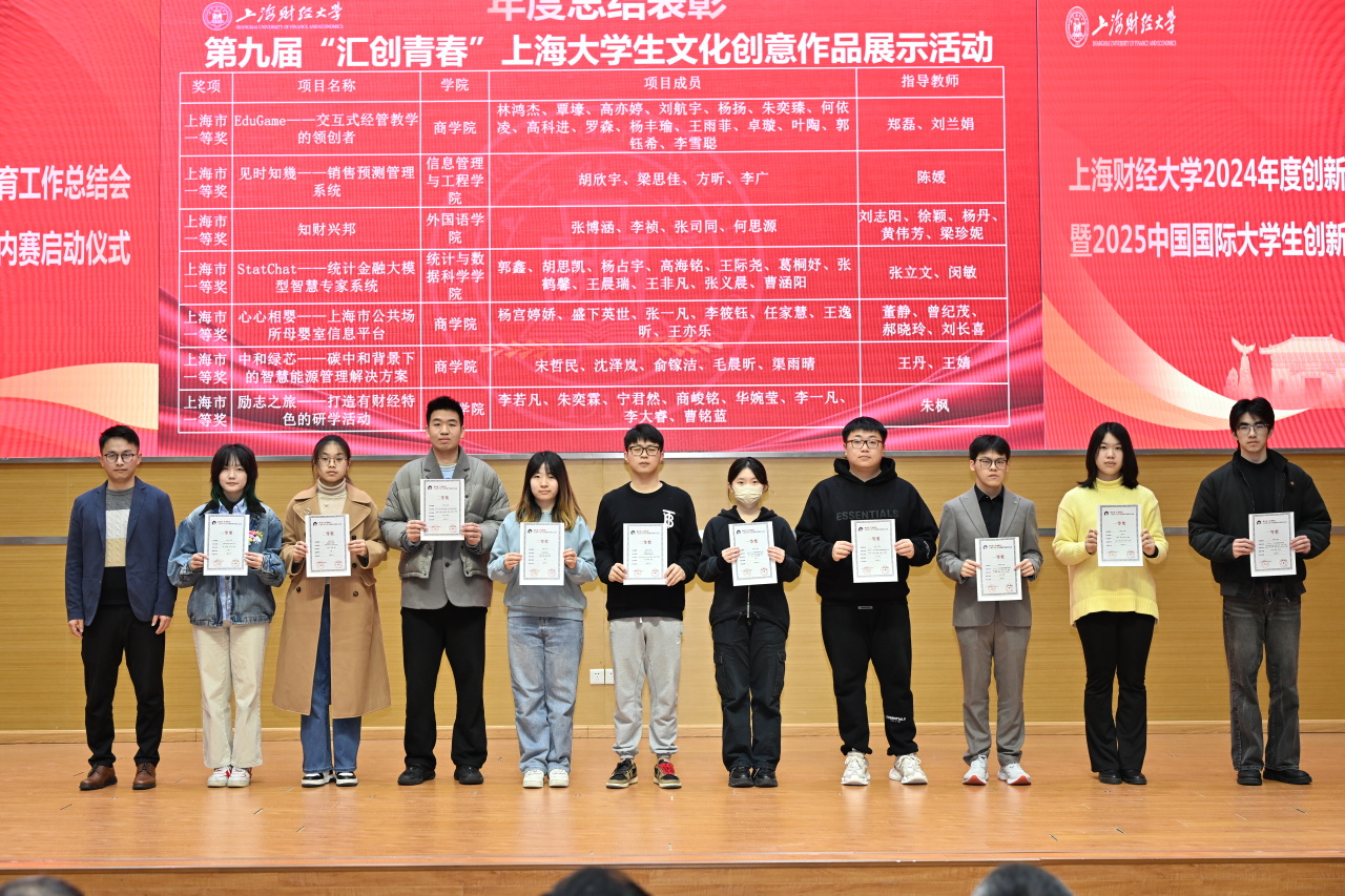 2024年度上海财经大学创新创业工作总结会暨中国国际大学生创新大赛(2025)校内赛的启动仪式是我校创新创业成果的一次集中总结和展示,更是为了激励全校师生干事创业、奋勇争先,推动学校创新创业教育纵深发展。