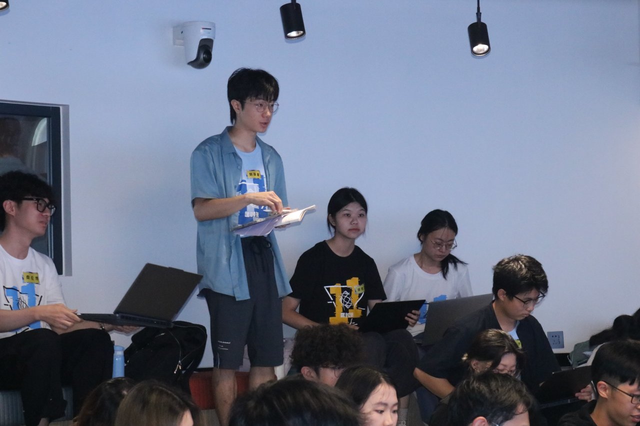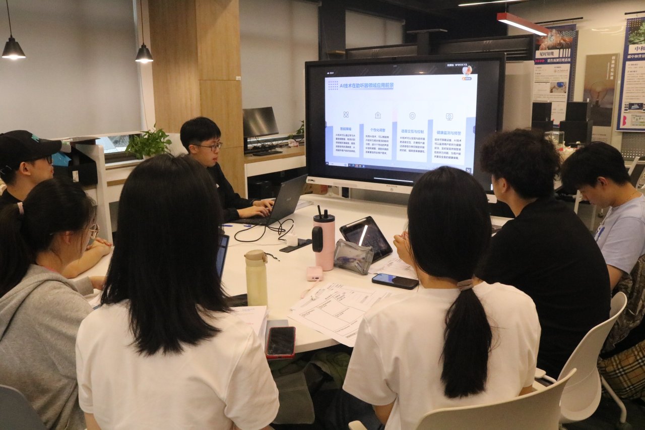 下午同学们分为不同小组观赛,来自不同高校不同专业的参赛课题主题多样,涉及生态环保,医疗技术等方面,融合AI科技,探索新可能。项目兼具创新性与实用价值,为同学们提供了实战经验与参考。
