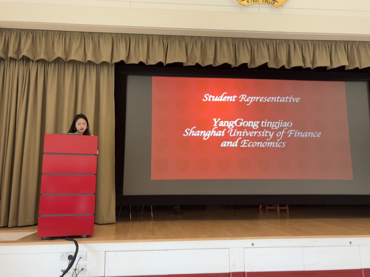 杨宫同学在发言中表达了对剑桥大学老师们的感谢以及此次暑期项目的收获,她表示,作为一名商科专业学生,她曾对自己的专业价值感到迷茫,此次通过与教授的深入交流,她认识到商科不仅是一门需要长期积累与沉淀的学科,更具备与人工智能等前沿科技深度融合的巨大潜力,对自己的未来职业发展充满信心。