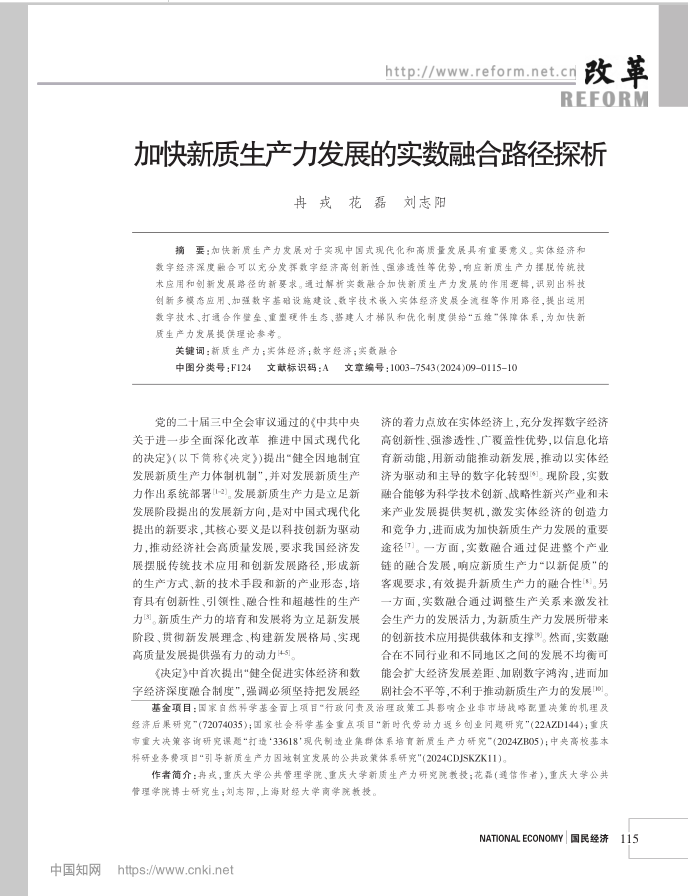 《改革》冉戎、花磊、刘志阳|加快新质生产力发展的实数融合路径探析《改革》