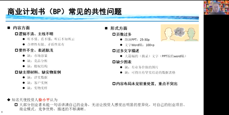 悦晚股权投资合伙人江勇博士从评审和投资者的视角分享了商业计划书撰写过程中的逻辑和要点。指出商业计划书的价值体现在四个维度:实战沙盘、行动计划、交流纲要和决心展示。