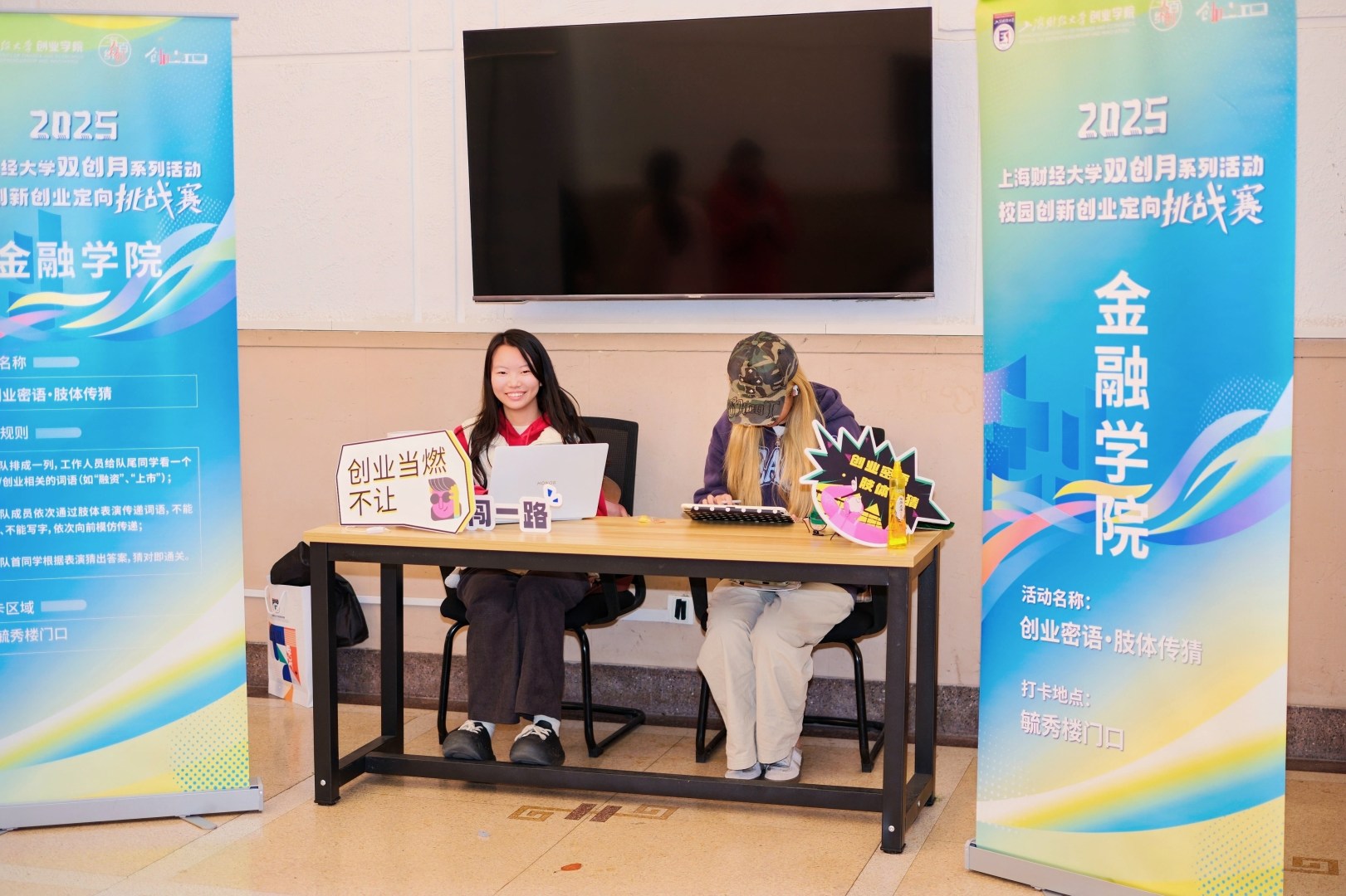 活动当天,参赛团队从起点出发,沿四条定制路线穿梭于校园各特色点位。金融学院“创业密语・肢体传猜”中,学子们用肢体演绎“融资”“上市”等专业词汇,默契传递创业知识;商学院“双创快闪挑战”里,团队随机抽取产品创意,90秒即兴路演展现商业思维;数学学院“巴什博弈”考验策略智慧,经济学院“猜词经济学”比拼专业储备,法学院“刺猬花店包装”锻炼实践能力……各点位任务将学科特色与创新创业深度融合,让同学们在闯关过程中实现“学以致用”。