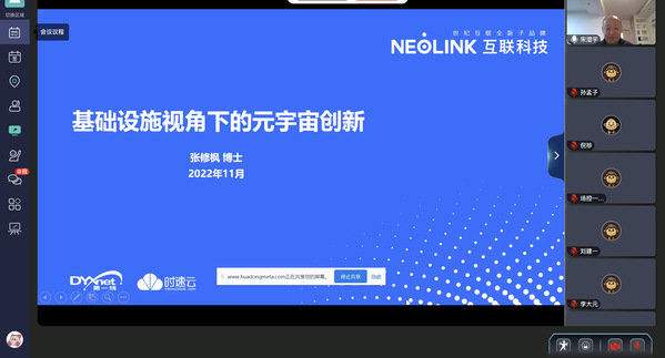 2022年11月19日下午,全球创业周·元宇宙创业研讨会在云宇宙顺利举行,超过1.5万人次观众进入元宇宙会议或通过在线直播参与了本次研讨会。